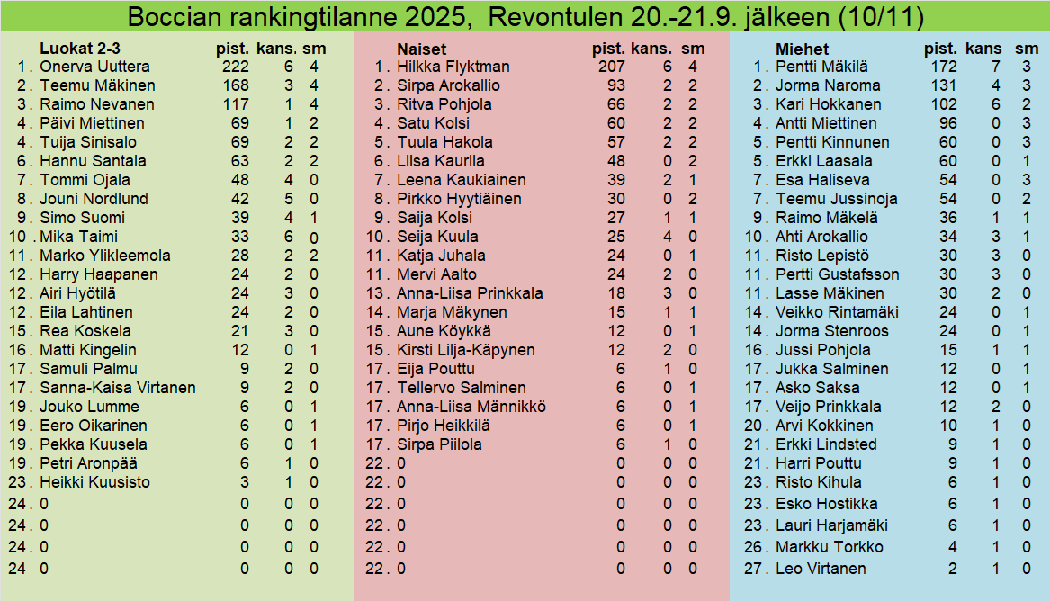 Tässä päivitetyt rankingpisteet. Viimeinen osakilpailu on Vilppula-Boccia 13.12.2025.